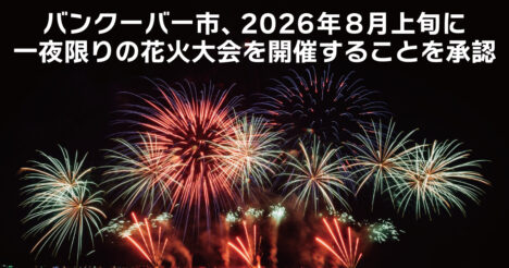 バンクーバー市、2026年8月上旬に一夜限りの花火大会を開催することを承認