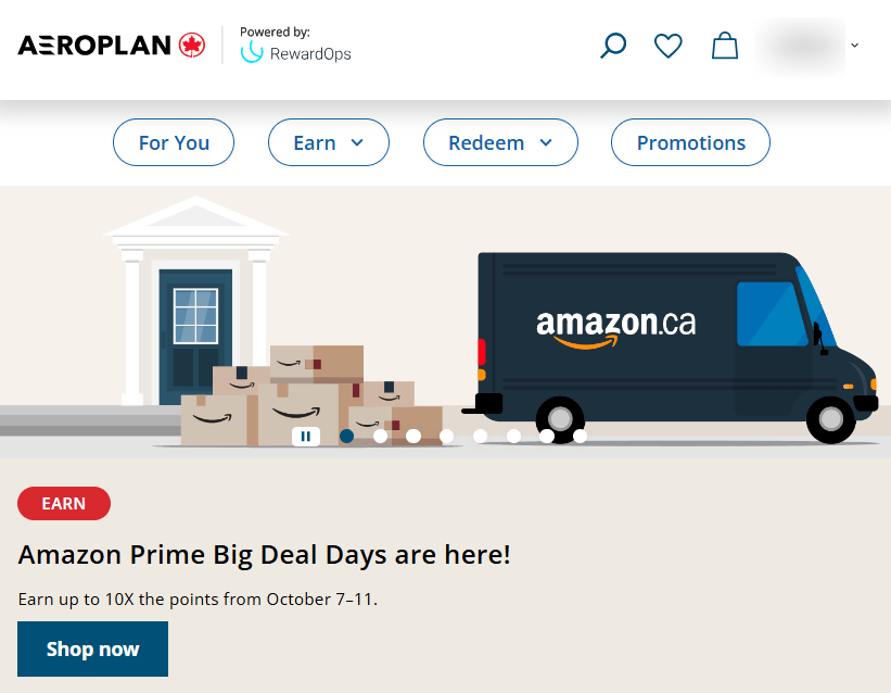 アエロプランに登録している方は、アエロプランの eStore Shopping のAmazon.caページを確認してみてください。10月7日(火)~11日(金)まで特定カテゴリーの商品1ドルにつき最大10ポイント得られるキャンペーンが行われていますよ。