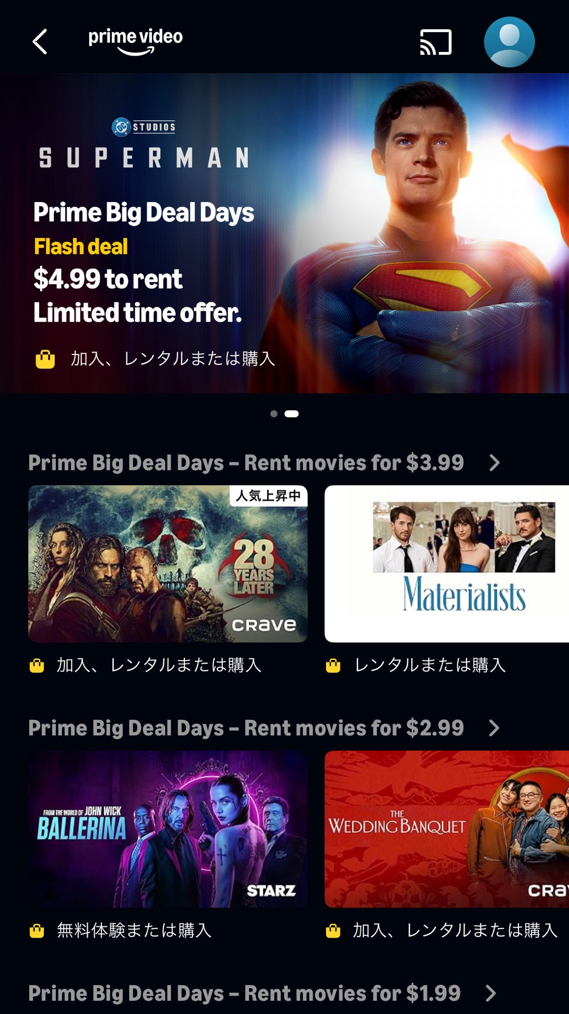 普段ドラマや映画をよく見るという方にオススメなのが、プライムビデオ。プライム会員であれば、最初からたくさんのコンテンツが楽しめますが、プライムセールディールとして、一部の作品が通常より安くレンタルできたり、購入できたりします。