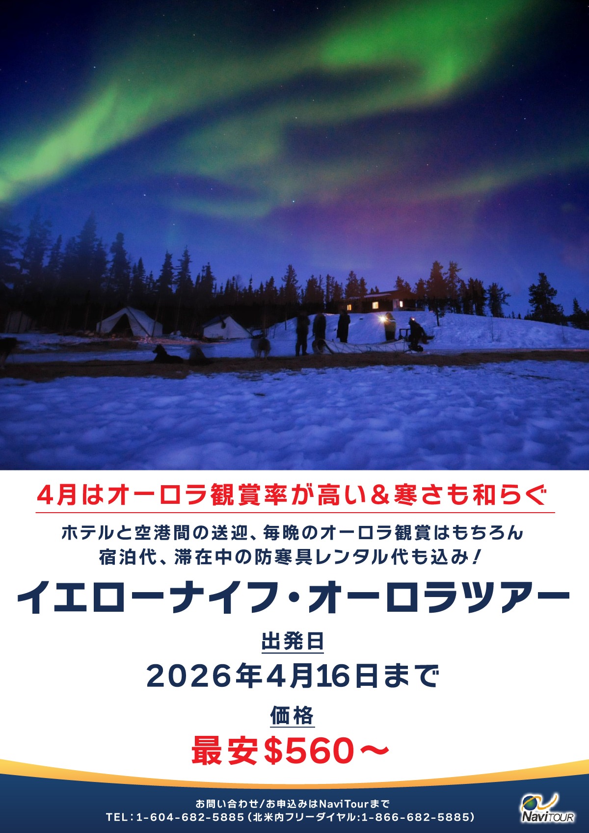 まずはじめに、NaviTourがオススメする4月のイエローナイフオーロラツアーを紹介します。
