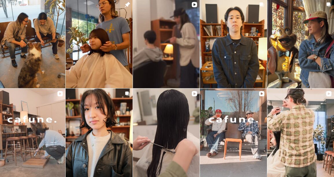 cafune. hair salon のお店のInstagramは、ヘアスタイリングをたくさん載せるアカウントにしたくなかったので(笑)、インテリアなどを載せています。ただ、ストーリーズではたまにヘアスタイリングの投稿をたまにしているので、よかったらフォローよろしくお願いします!