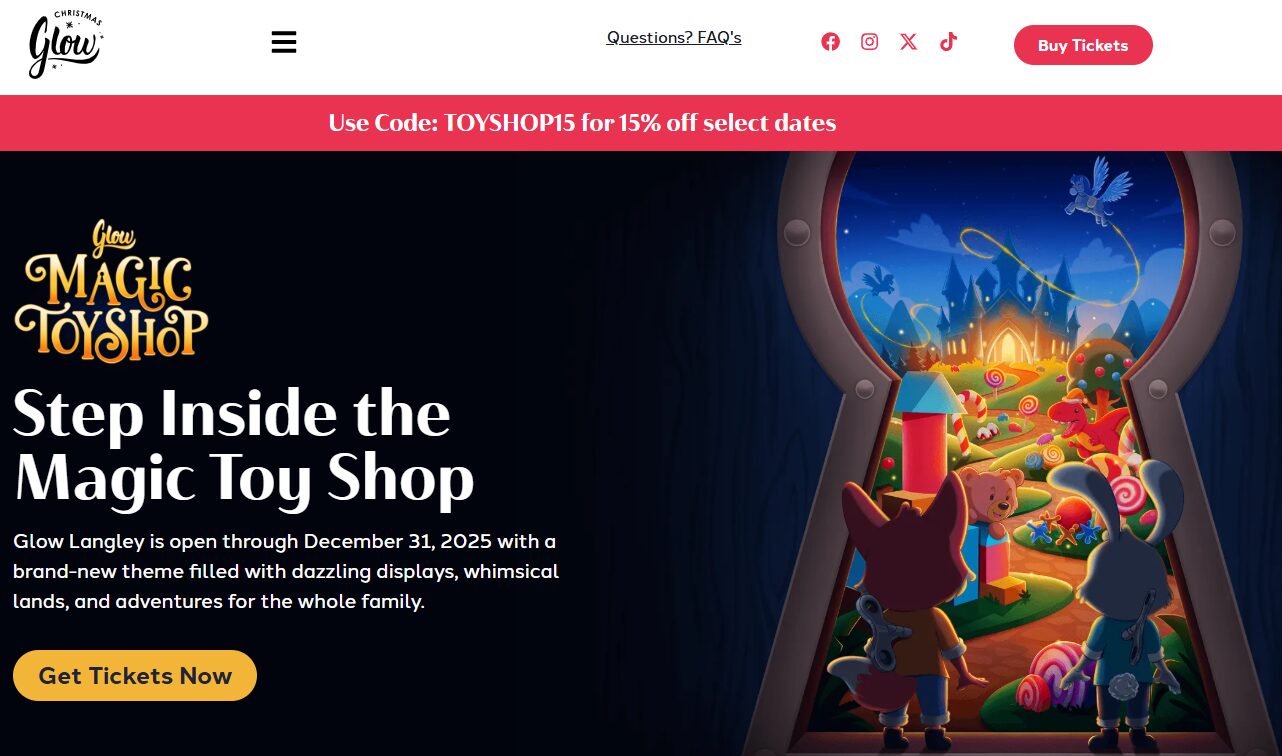 ラングレーで開催されているイルミネーションイベントです。12月31日まで続きます。今年のテーマは「The Magic Toy Shop」で、様々な工夫を凝らしたイルミネーションを見ることができます。
