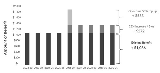 この給付金はインフレ率に連動し、既存の物品サービス税(GST)控除を基盤として、6年間で117億ドルの追加支援を提供します。GSTクレジットの受給額が25%増額され、2026年7月から5年間適用予定となっています。