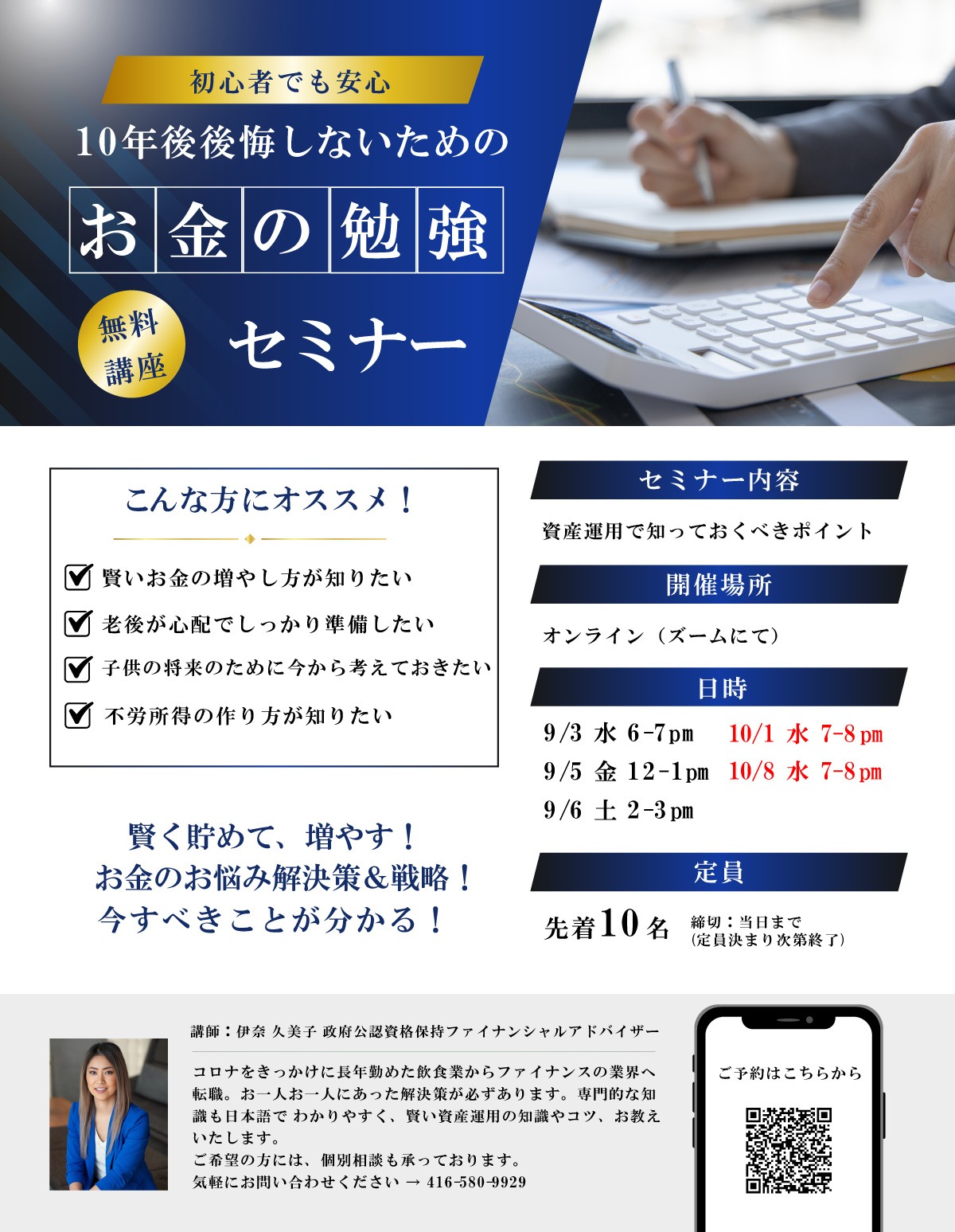 はじめに:各日定員10名まで!10年後後悔しないためのお金の勉強セミナーが2025年10月に開催