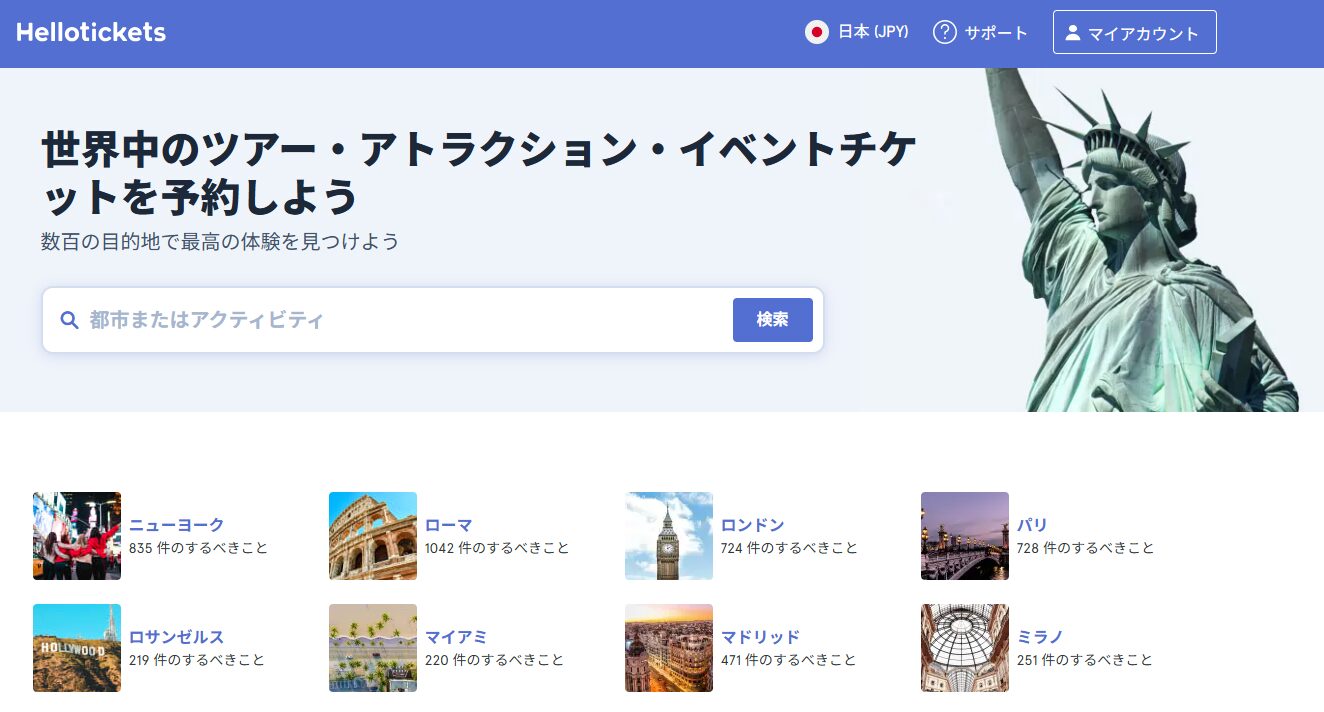数あるサービスの一例として、今回紹介するのは「Hellotickets」。アイスホッケーを含むスポーツ観戦チケット、世界中のさまざまな旅行体験やツアーを日本語で簡単に検索・予約可能です。
