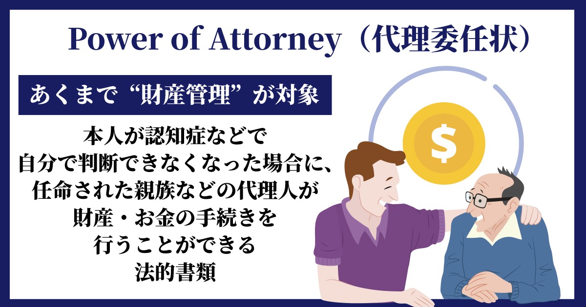 正直に言うと、Power of Attorney(代理権委任状)は遺言書以上に重要だと考えています。日本の「成年後見制度」に近い役割を持つものだと思っていただくとわかりやすいかもしれません。