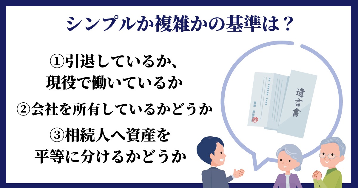 現役で会社を経営していたり、個人資産と事業資産はそれぞれ別の人に管理してほしいなど、事情が入り組んでいる場合は、複雑なケースに該当します。場合によっては、複数の遺言書を作成することもあります。