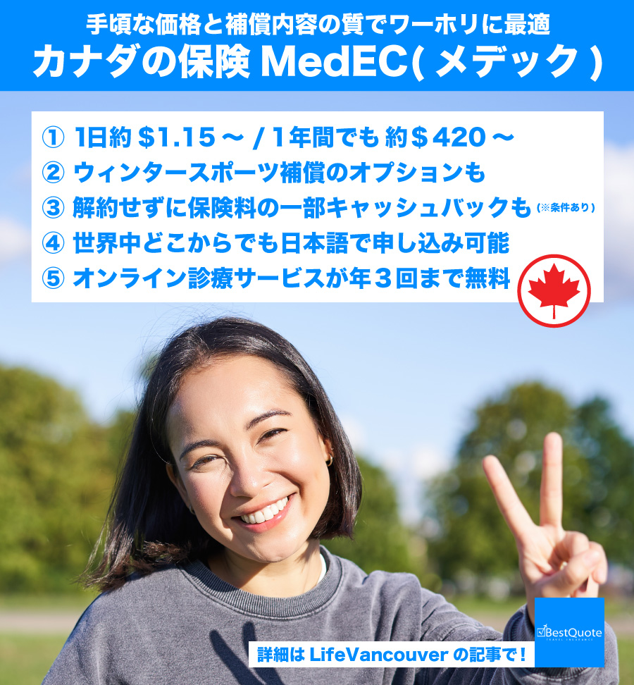 (コスパの良さで人気!カナダのワーホリ保険MedEC魅力4つ。キャッシュバック付)