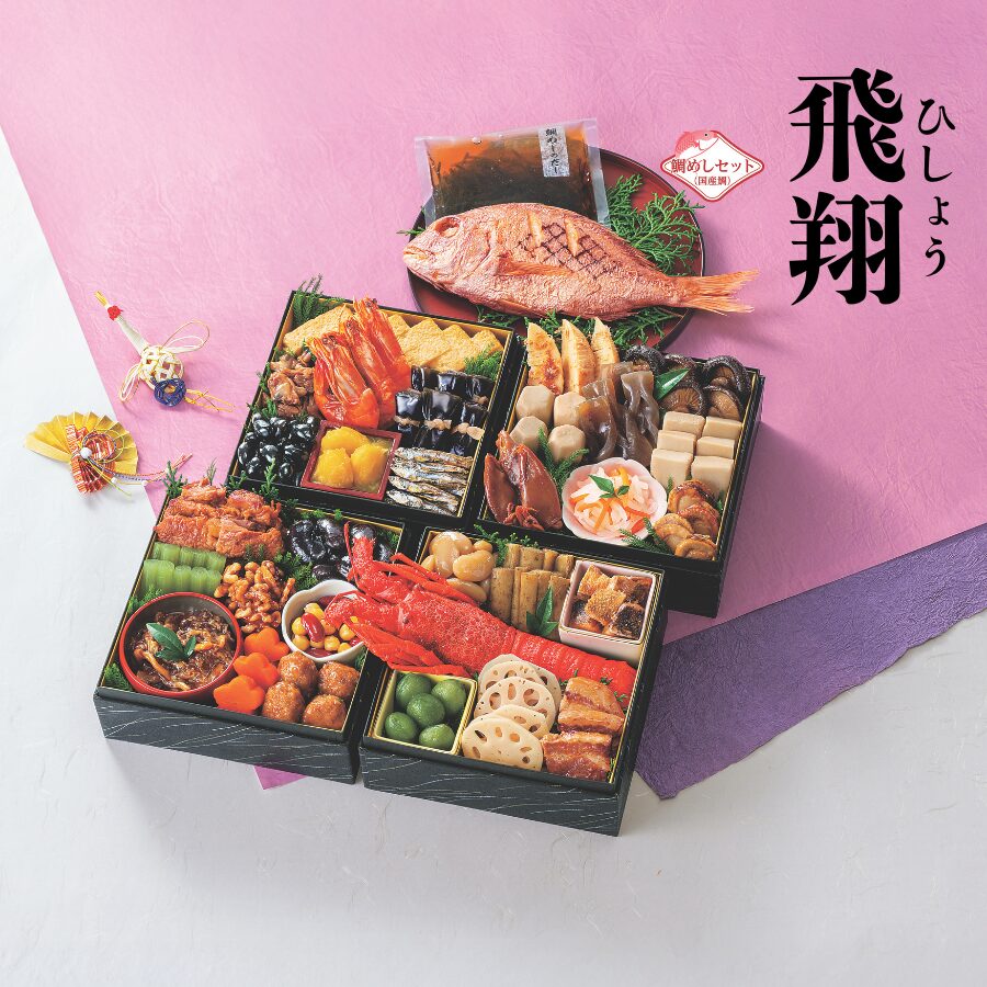 お祝い料理と鯛めしセットがついたボリューム感あるおせちです。