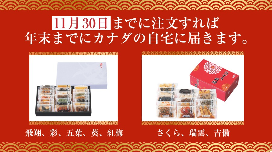 11月30日までに注文すれば年末までに日本からカナダの自宅におせちが届きます