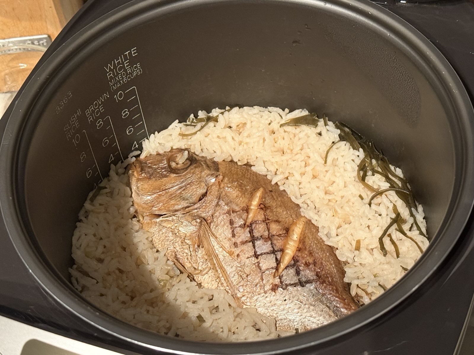 後日、家で鯛めしも作ってみて、おいしくいただきました。(同梱のつゆと鯛を入れて、お米を炊くだけです)