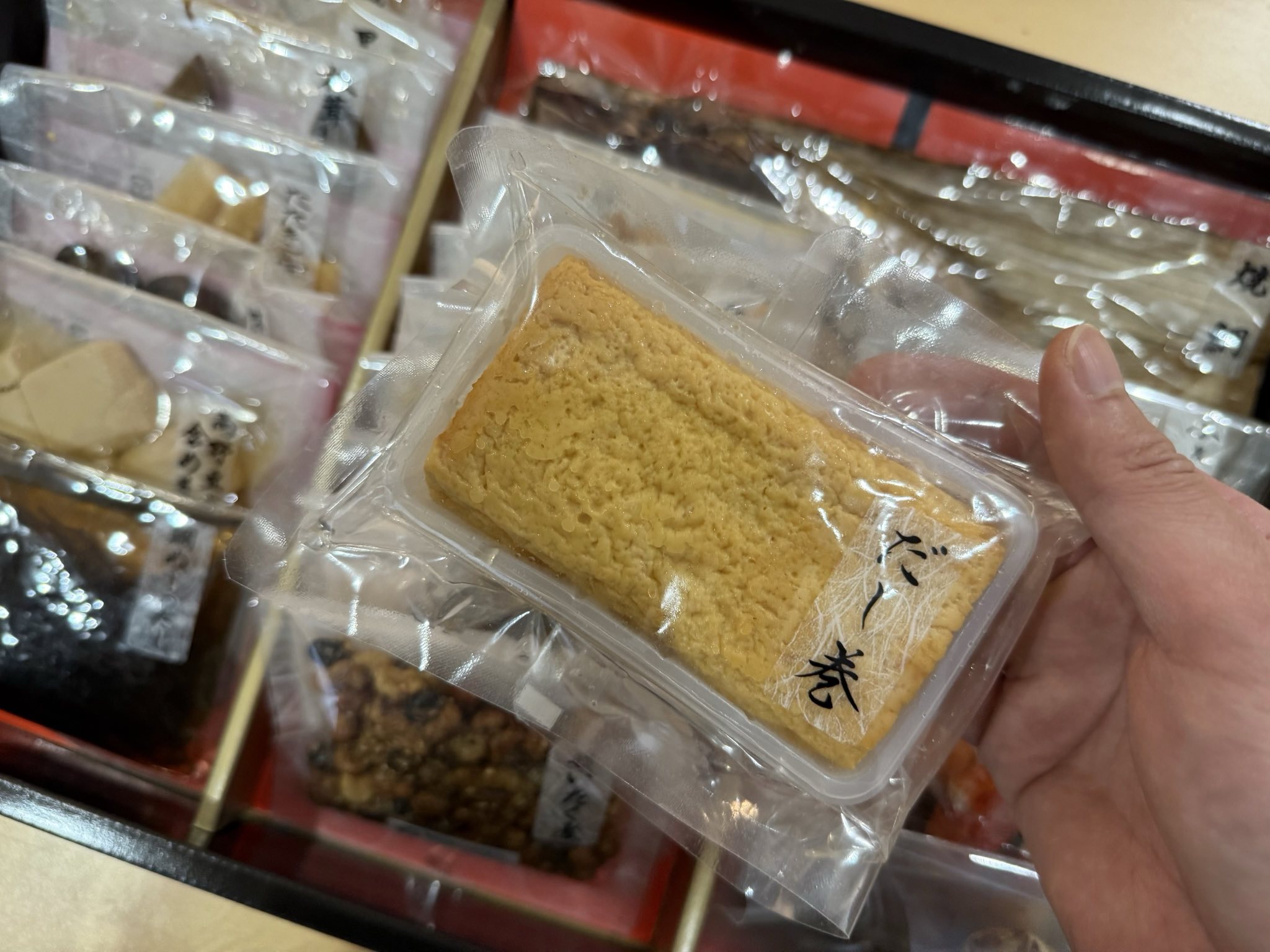 実は、おせちのサンプルだけかと思いきや、箱を開けると蕎麦と丸もちも入っていました。