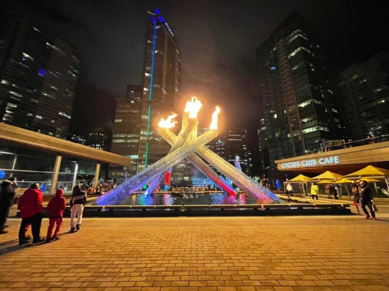 カナダのメーカーであるBombardier社によって設計された聖火台は、コールハーバーエリアの Jack Poole Plaza(ジャック・プール・プラザ)に設置されていて、現在も観光スポットとして人気です。