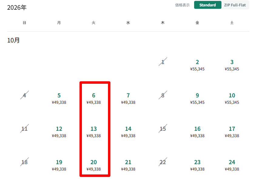 増便されたチケットも既にオンラインで販売中ということで、価格を調べてみました。